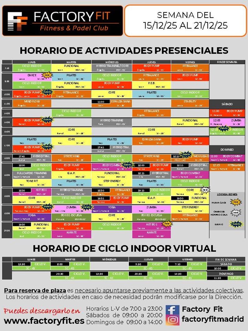 HORARIO DE ACTIVIDADES (DEL 14/12/25 AL 20/12/25)
