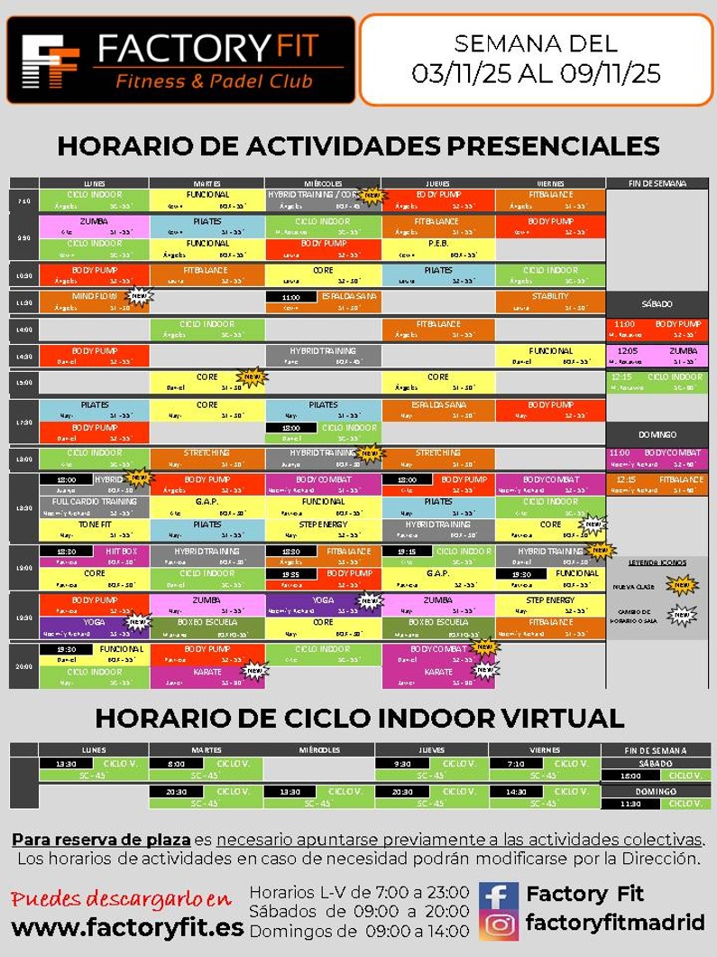 HORARIO DE ACTIVIDADES (DEL 03/11/25 AL 09/11/25)